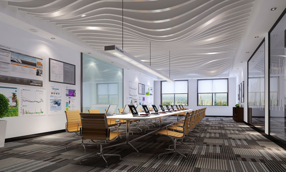 會客區域,賽凡利用不規則形狀的燈光設計讓這個區域更加具有生機。會客區的設計展現了企業的文化內涵與企業追求,讓黑龍江文化金融服務中心對未來的工作擁有使命感。